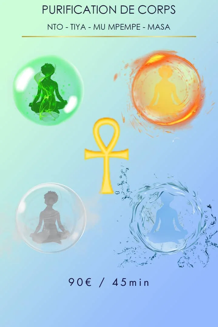 Terre ( Nto) - Feu (Tiya) - Air ( Mu-mpempe) - Eau (Masa)